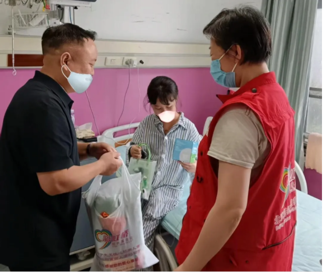 在北京,彩虹桥工作人员带着一份份沉甸甸的“贴心包”走进病房,为宝贝们送上鼓励与祝福的同时,也向患儿家长了解孩子的治疗康复进展。这份关怀,恰似珍贵的“心药”,这份温暖,将持续在病房内外传递,守护着孩子们通往康复的每一步。